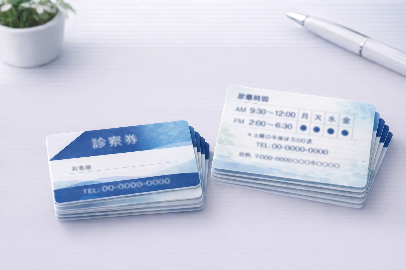 診察券は患者様が来院時に必ず使用するツールで、利便性と視認性が重要です。予約やアクセス情報をわかりやすく伝えることで、スムーズな来院をサポートします。